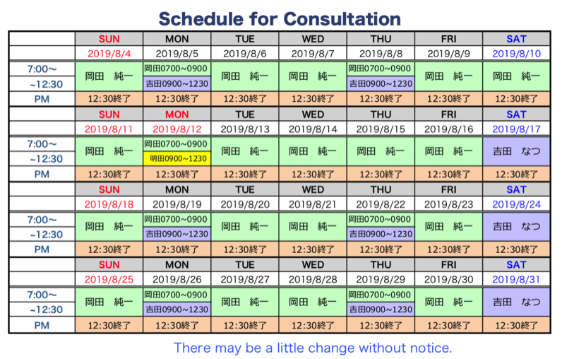07:00〜12:30 ( Sat / Sun / Holiday)